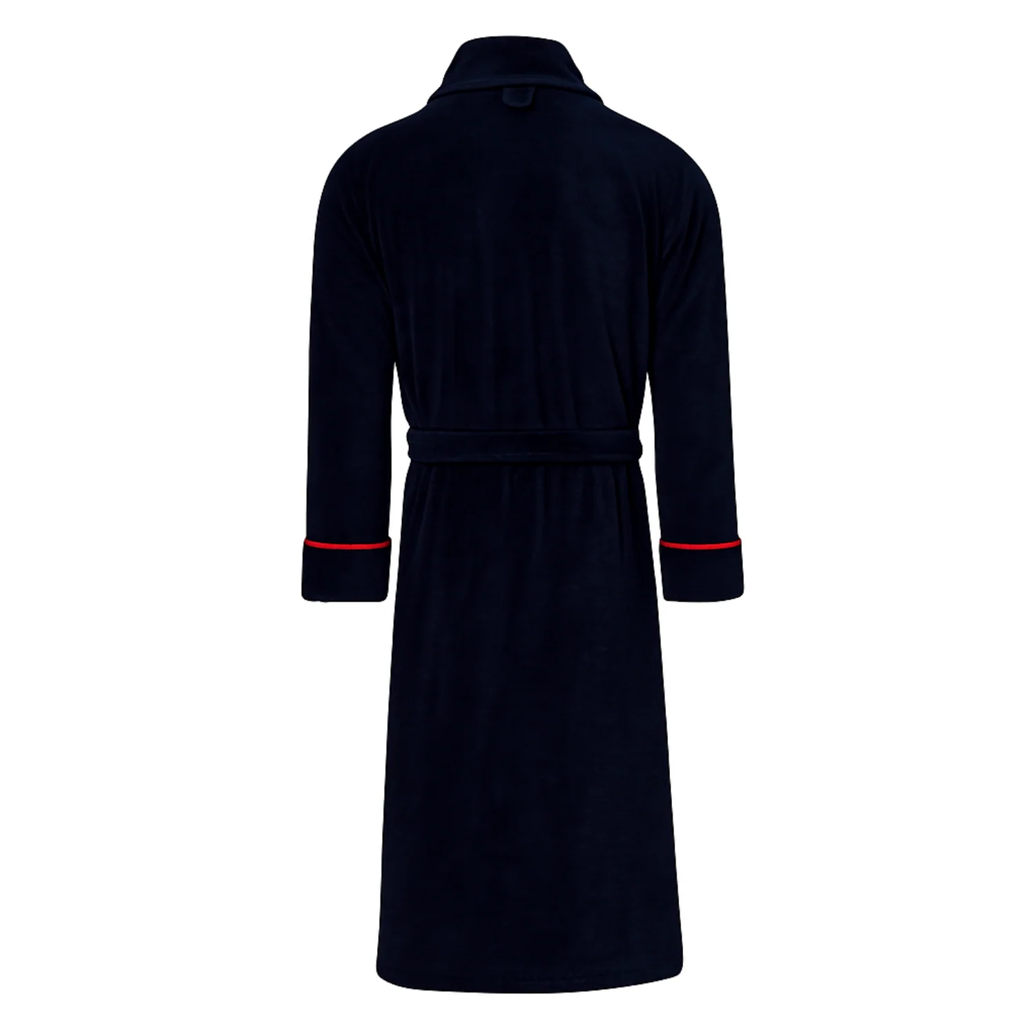 Carnegie Luxury Cotton Long Velvet Smoking Jacket in Navy
