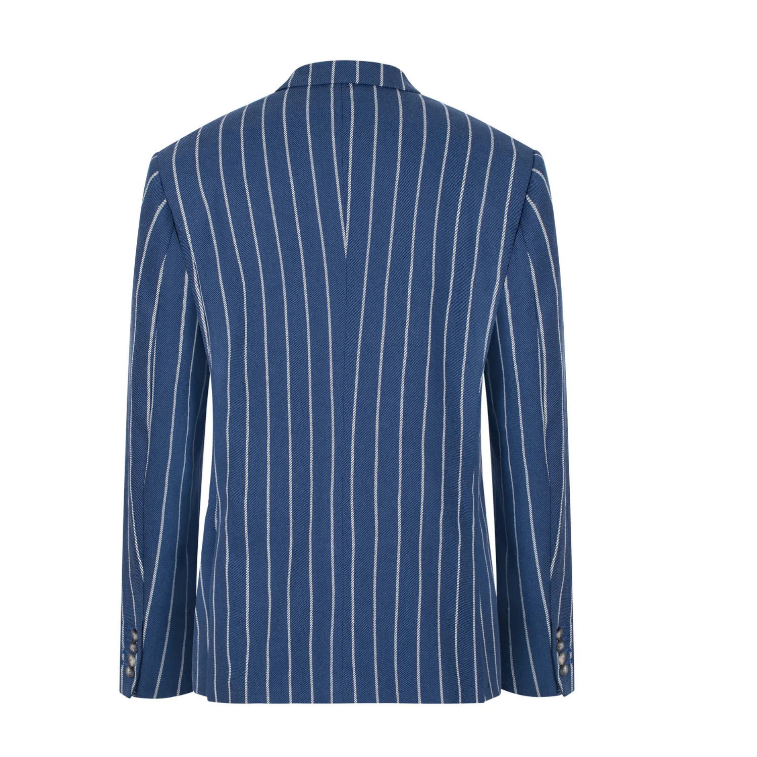 This single-breasted silhouette features sophisticated sea and white vertical pinstripes, timeless notched lapels, signature 'hacking' slanted pockets with ticket pocket, and two internal breast pockets—detailing that exudes understated elegance and heritage craftsmanship. Ideal for garden parties, yacht club gatherings, exclusive social soirees, or effortless metropolitan sophistication, where discerning gentlemen seek to distinguish themselves with effortless poise and sharp, yet relaxed style—never overdressed, always impeccably presented.